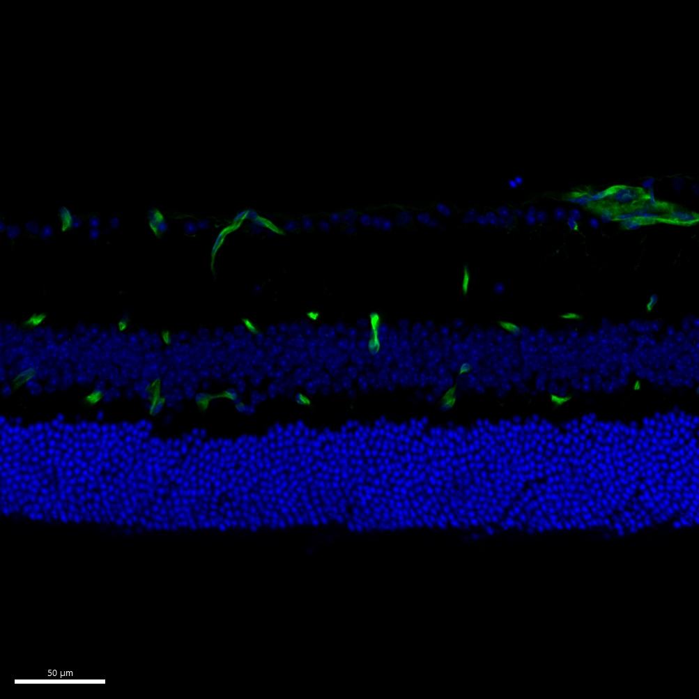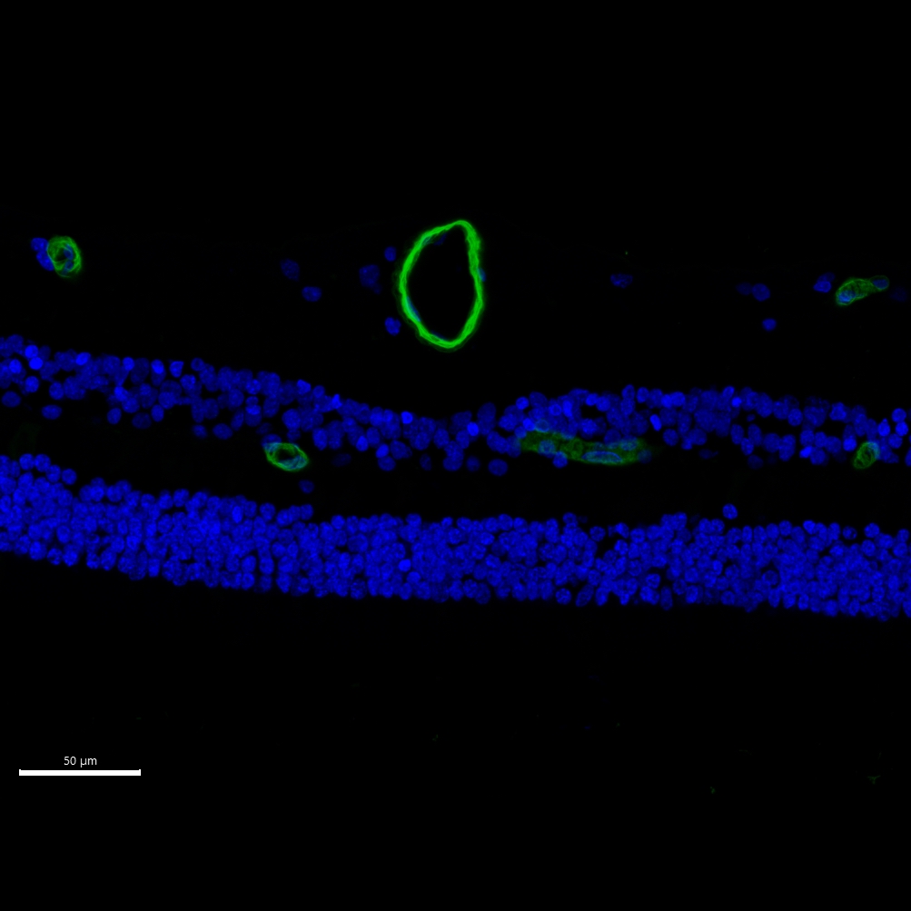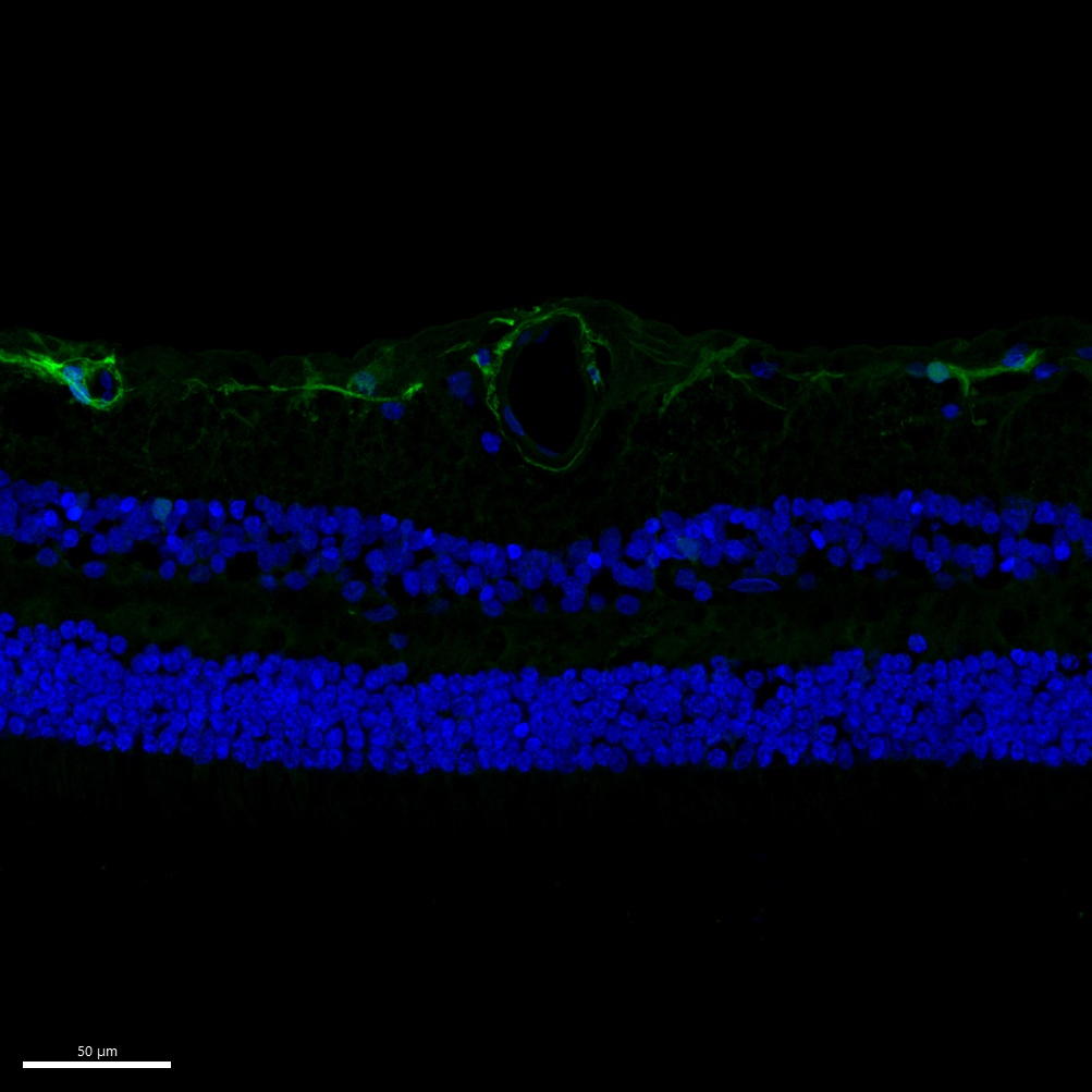 | P62737 | Primary Antibody | Alpha smooth muscle actin | Mouse | Mouse | IgG2a | 1A4 | Thermo Fisher Scientific | 14-9760-82 | AF532 | AB_2572996 | Custom | IBEX2D Manual | 1:4 Cytofix/Cytoperm Fixed Frozen | Retina | Healthy | 0.1% Tween | NA | 1 mg/ml LiBH4 15 minutes + light | Yes | 0009-0003-0776-2163 | NA | 0009-0003-0776-2163 | Mouse retina: Alpha smooth muscle actin (green, catalogue number 14-9760-82) and DAPI (blue, catalogue number D9542-1MG) |